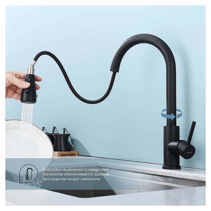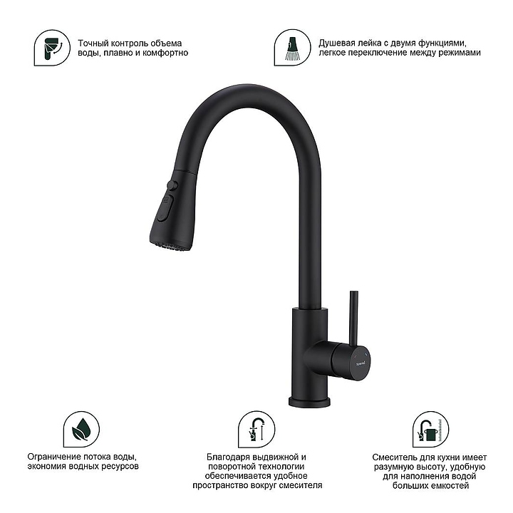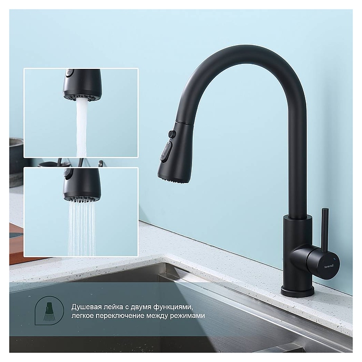 Смеситель Splenka S203.49.06 предназначен для подачи горячей и холодной воды в кухонных помещениях. Модель оснащена выдвижным изливом и керамическим картриджем, обеспечивающим плавный ход рычага смесителя, контроль и точность при выборе напора и температуры воды. Аэратор создает мягкую струю без брызг и снижает шум. Изделие выполнено из нержавеющей стали, которая отличается прочностью и долговечностью. В комплект поставки входят подводка и крепления. Особенности: