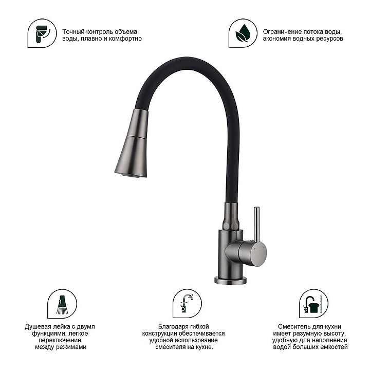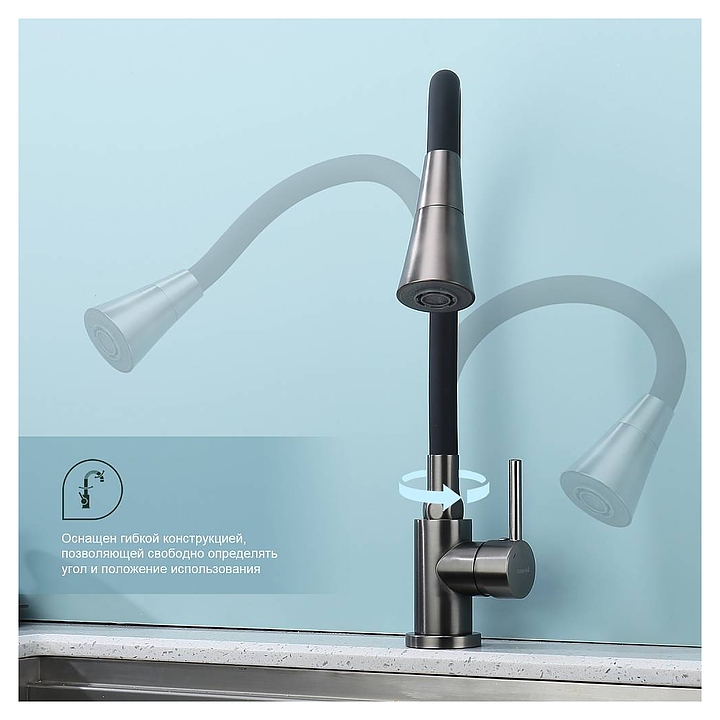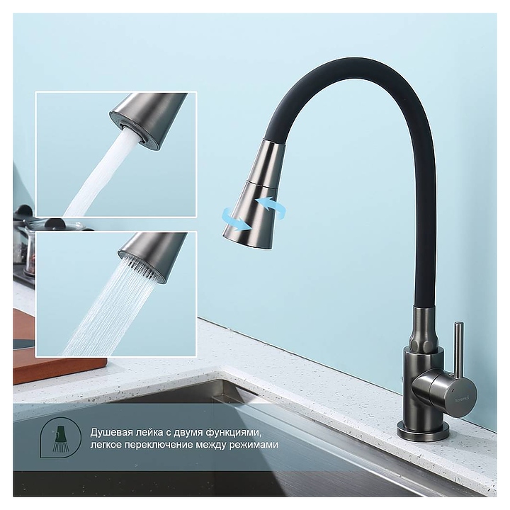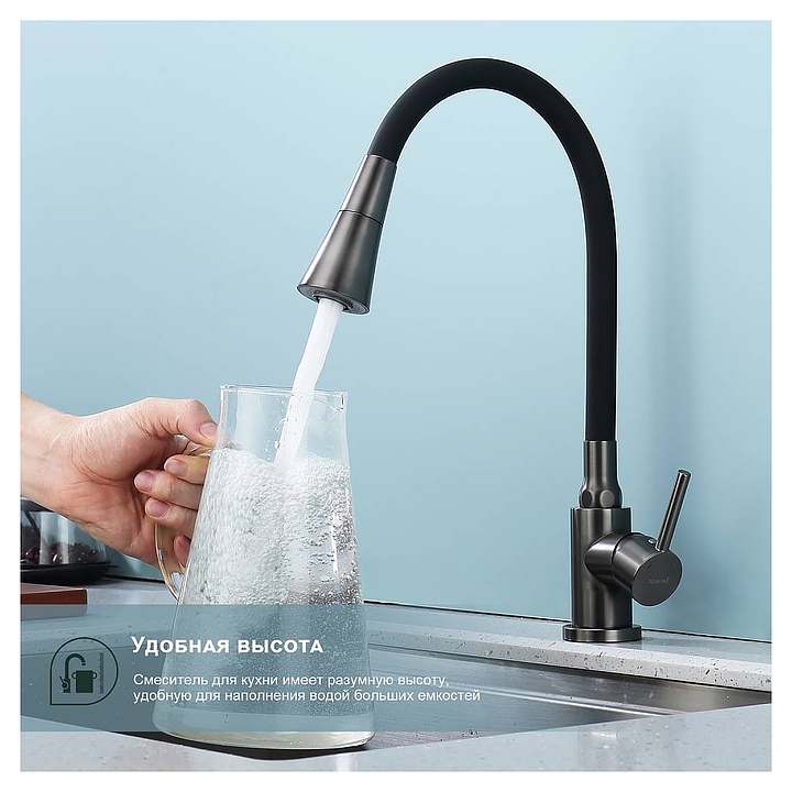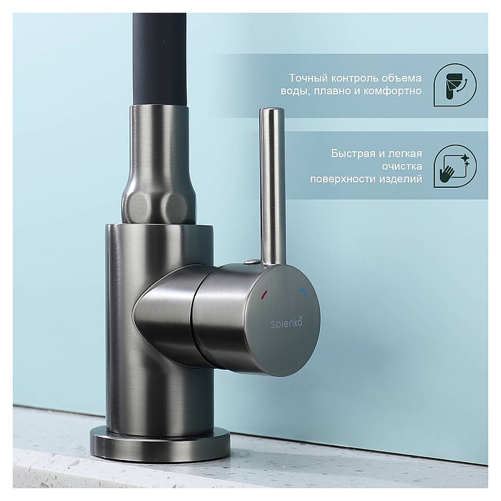 Смеситель Splenka S201.4306.09 предназначен для подачи горячей и холодной воды в кухонных помещениях. Модель оснащена гибким изливом и керамическим картриджем, обеспечивающим плавный ход рычага смесителя, контроль и точность при выборе напора и температуры воды. Аэратор создает мягкую струю без брызг и снижает шум. Корпус выполнен из нержавеющей стали, которая отличается прочностью и долговечностью. В комплект поставки входят подводка и крепления. Особенности: