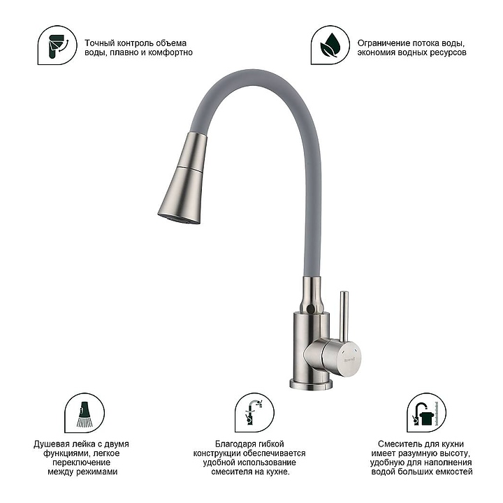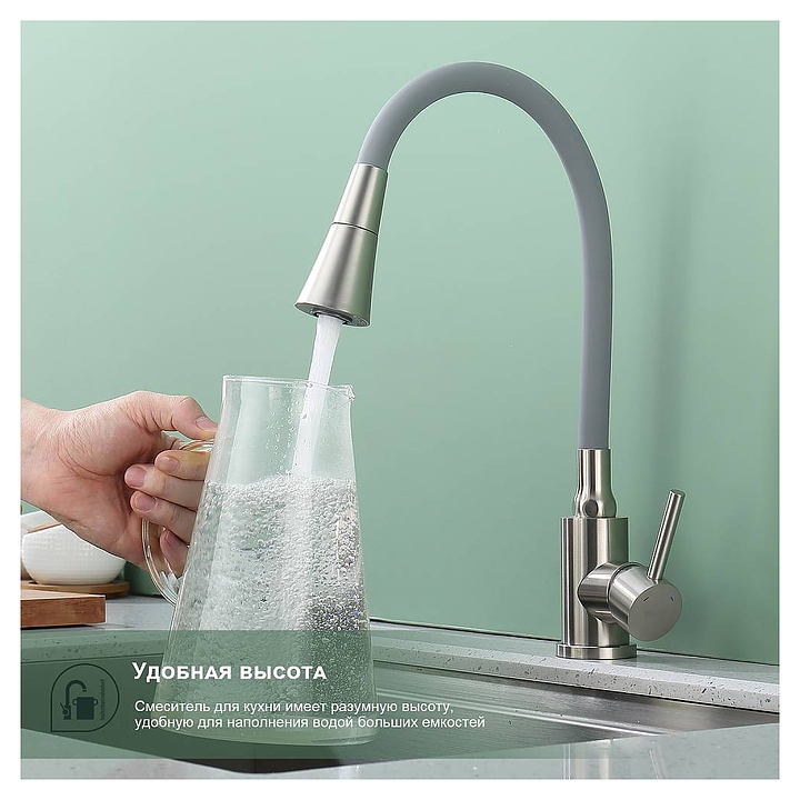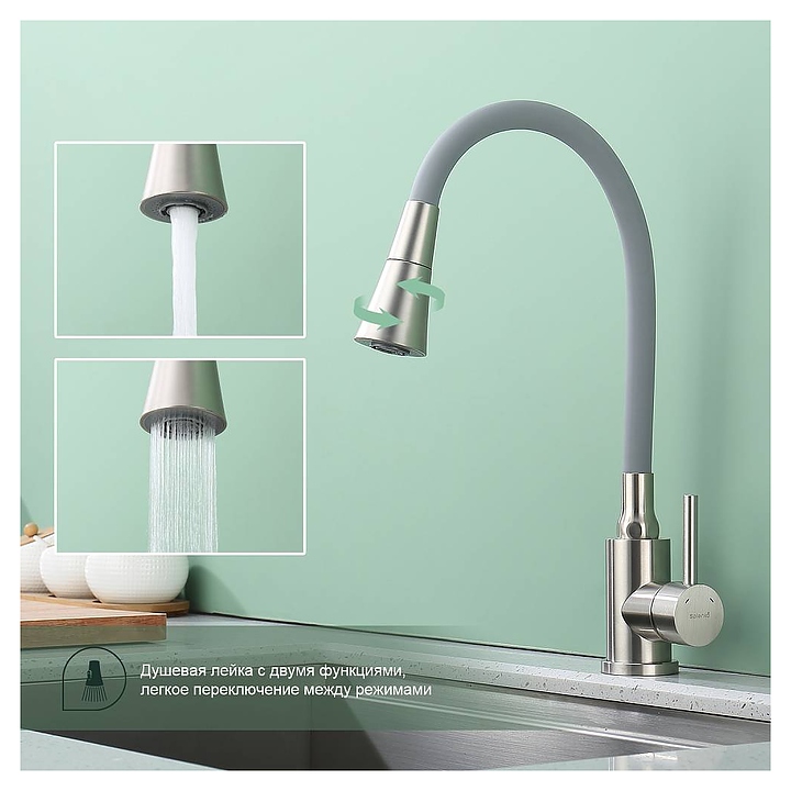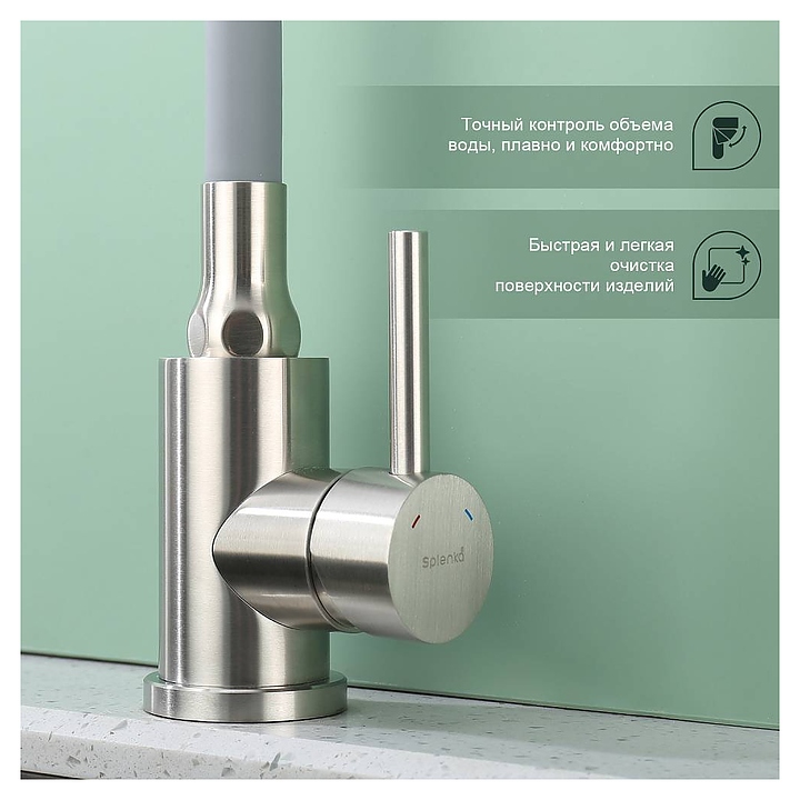 Смеситель Splenka S201.4307.05 предназначен для подачи горячей и холодной воды в кухонных помещениях. Модель оснащена гибким изливом и керамическим картриджем, обеспечивающим плавный ход рычага смесителя, контроль и точность при выборе напора и температуры воды. Аэратор создает мягкую струю без брызг и снижает шум. Корпус выполнен из нержавеющей стали, которая отличается прочностью и долговечностью. В комплект поставки входят подводка и крепления. Особенности: