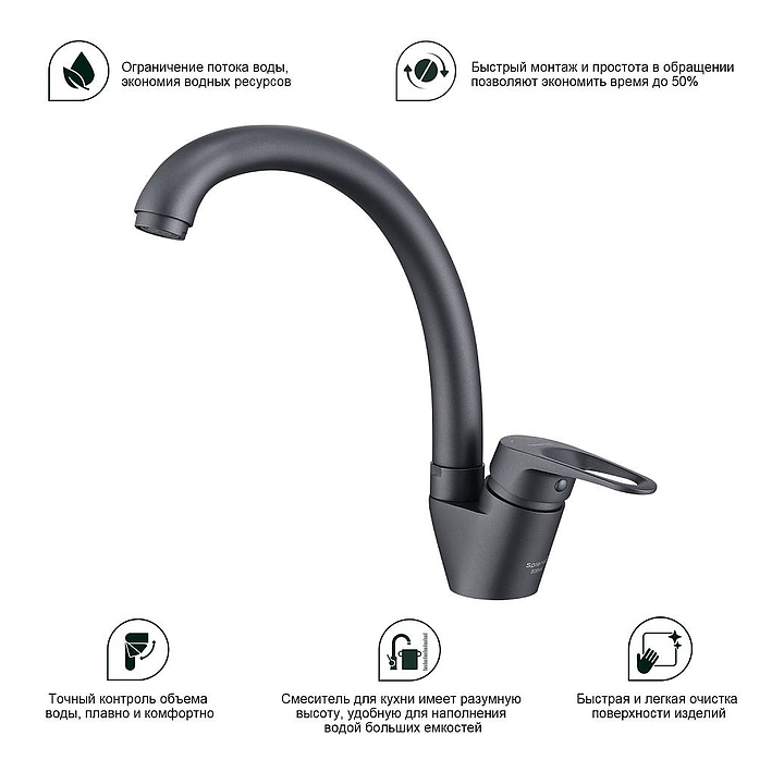 Смеситель Splenka S202.41.07 предназначен для подачи горячей и холодной воды в кухонных помещениях. Модель оснащена керамическим картриджем, обеспечивающим плавный ход рычага смесителя, контроль и точность при выборе напора и температуры воды. Аэратор создает мягкую струю без брызг и снижает шум. Изделие выполнено из нержавеющей стали, которая отличается прочностью и долговечностью. В комплект поставки входят подводка и крепления. Особенности: