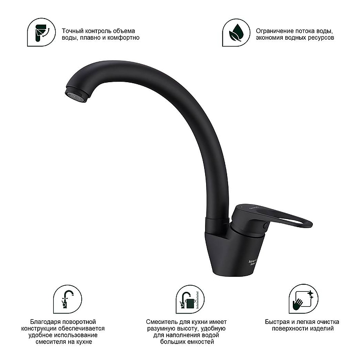 Смеситель Splenka S202.41.06 предназначен для подачи горячей и холодной воды в кухонных помещениях. Модель оснащена керамическим картриджем, обеспечивающим плавный ход рычага смесителя, контроль и точность при выборе напора и температуры воды. Аэратор создает мягкую струю без брызг и снижает шум. Изделие выполнено из нержавеющей стали, которая отличается прочностью и долговечностью. В комплект поставки входят подводка и крепления. Особенности: