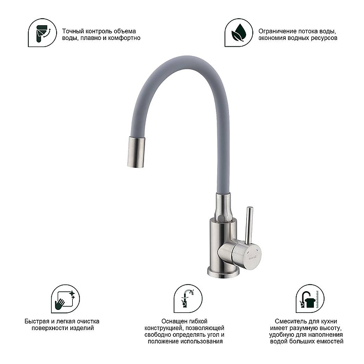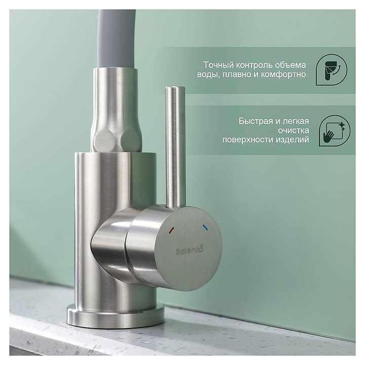 Смеситель Splenka S201.4407.05 предназначен для подачи горячей и холодной воды в кухонных помещениях. Модель оснащена гибким изливом и керамическим картриджем, обеспечивающим плавный ход рычага смесителя, контроль и точность при выборе напора и температуры воды. Аэратор создает мягкую струю без брызг и снижает шум. Корпус выполнен из нержавеющей стали, которая отличается прочностью и долговечностью. В комплект поставки входят подводка и крепления. Особенности:
