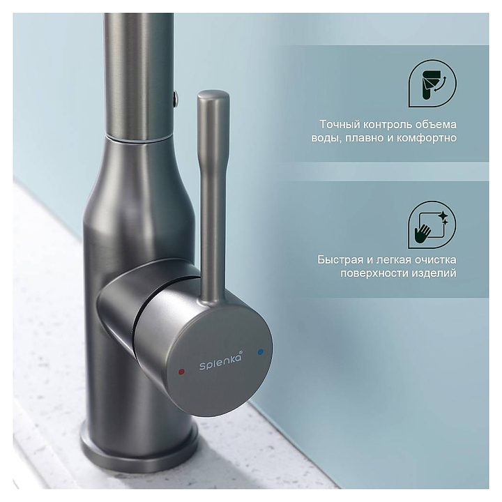 Смеситель Splenka S206.40.09 предназначен для подачи горячей и холодной воды в кухонных помещениях. Модель оснащена керамическим картриджем, обеспечивающим плавный ход рычага смесителя, контроль и точность при выборе напора и температуры воды. Аэратор создает мягкую струю без брызг и снижает шум. Изделие выполнено из нержавеющей стали, которая отличается прочностью и долговечностью. В комплект поставки входят подводка и крепления. Особенности: