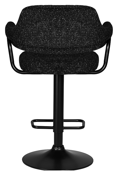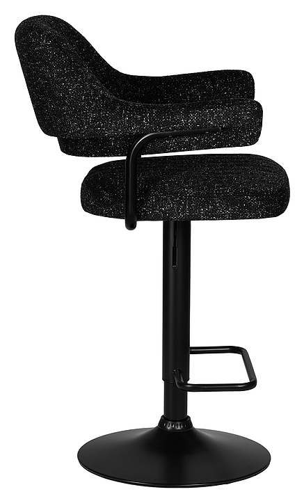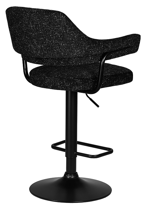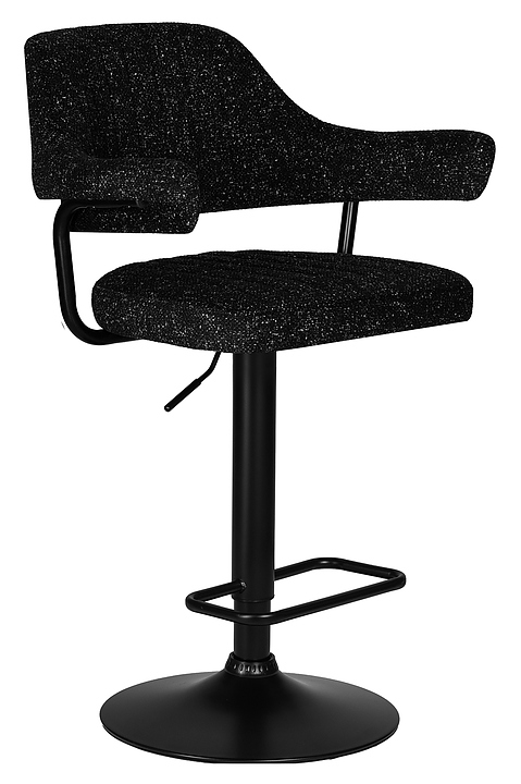 Барный стул DOBRIN CHARLY BLACK LEO18 предназначен для обустройства барной зоны в кухнях, столовых, гостиных, а также в кафе и ресторанах. Модель оснащена основанием в виде диска, мягким вращающимся сиденьем фигурной формы, механизмом регулировки высоты, мягкой спинкой, подлокотниками и подставкой для ног. Основание выполнено из металла, обивка - из твида. Особенности: