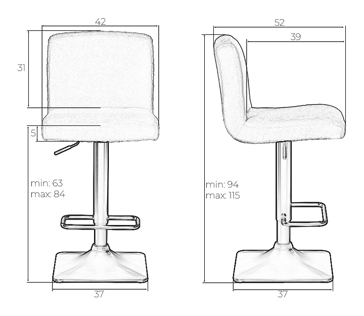 Барный стул DOBRIN LEO предназначен для обустройства барной зоны в кухнях, столовых, гостиных, а также в кафе и ресторанах. Модель оснащена квадратным основанием, мягким вращающимся сиденьем, механизмом регулировки высоты, мягкой спинкой и подставкой для ног. Основание выполнено из металла, обивка - из букле. Особенности: