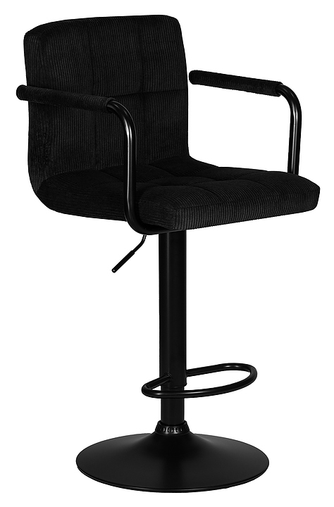 Барный стул DOBRIN 2041-52 KRUGER ARM BLACK предназначен для обустройства барной зоны в кухнях, столовых, гостиных, а также в кафе и ресторанах. Модель оснащена основанием в виде диска, мягким вращающимся сиденьем квадратной формы, механизмом регулировки высоты, мягкой спинкой, подлокотниками и подставкой для ног. Основание выполнено из металла, обивка - из вельвета. Особенности: