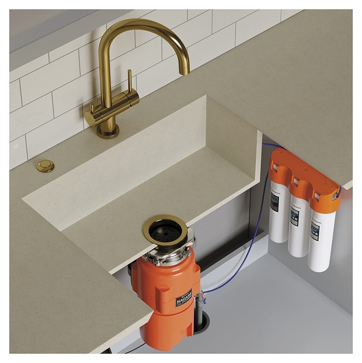 Измельчитель Omoikiri Nagare Slim 500 (4995061) предназначен для переработки любых пищевых отходов, включая даже некрупные кости, и избавления от необходимости постоянно выносить мусор в загородных домах и квартирах.Камера дробления выполнена из нержавеющей стали с антибактериальным покрытием, дробильное кольцо - из нержавеющей стали, дробильные кулачки - из литой нержавеющей стали, крышка-толкатель - из пластика. В комплекте с измельчителем идет пневматическая кнопка в цвете нержавеющая сталь (BN). Особенности: