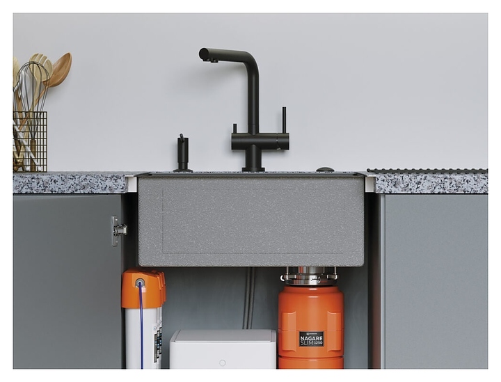 Измельчитель Omoikiri Nagare Slim 1250 (4995066) предназначен для переработки любых пищевых отходов, включая даже некрупные кости, и избавления от необходимости постоянно выносить мусор в загородных домах и квартирах.Камера дробления выполнена из нержавеющей стали с антибактериальным покрытием, дробильное кольцо - из нержавеющей стали, дробильные кулачки - из литой нержавеющей стали, крышка-толкатель - из пластика. В комплекте с измельчителем идет пневматическая кнопка в цвете нержавеющая сталь (BN). Особенности: