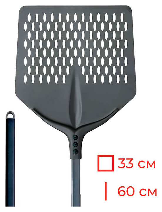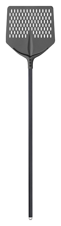 Квадратная посадочная лопата Cerutti Inox 752F33D используется совместно с печами на предприятиях общественного питания и торговли. Модель оснащена перфорированной рабочей поверхностью, 3 заклёпками, расположенными между ручкой и головкой лопаты для обеспечения устойчивости и безопасности, и крючком для удобного хранения и экономии места. Специальная фрезеровка кромки лопаты обеспечивает идеальное прилегание к столешнице и позволяет пицце скользить. Аксессуар выполнен из анодированного алюминия. Характеристики:
