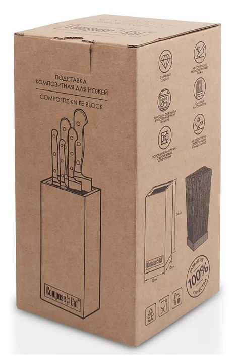 Подставка для кухонных ножей ComposeEat Elegance PDN112057OA4 предназначена для хранения ножей на предприятиях общественного питания и торговли, в частных домах и квартирах. Изделие выполнено из бумажного композитного материала, который отличается ударопрочностью, устойчивостью к резким перепадам температур, деформации и выцветанию. Особенности: