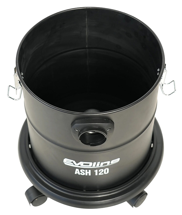 Пылесос EVOline ASH 120 предназначен для очистки и сбора остывшей золы и других продуктов горения из каминов, печей, мангалов и барбекю. Модель оснащена системой обратной продувки (очистки) фильтра и функцией выдува воздуха. Пылесос состоит из бака на прочных колесах, шланга и трубки для сбора золы, турбинная часть фиксируется на баке 2 защелками. Бак выполнен из стали и окрашен износостойкой молотковой эмалью, шланг - из металла, трубка для сбора золы - из алюминия. Дополнительные характеристики: