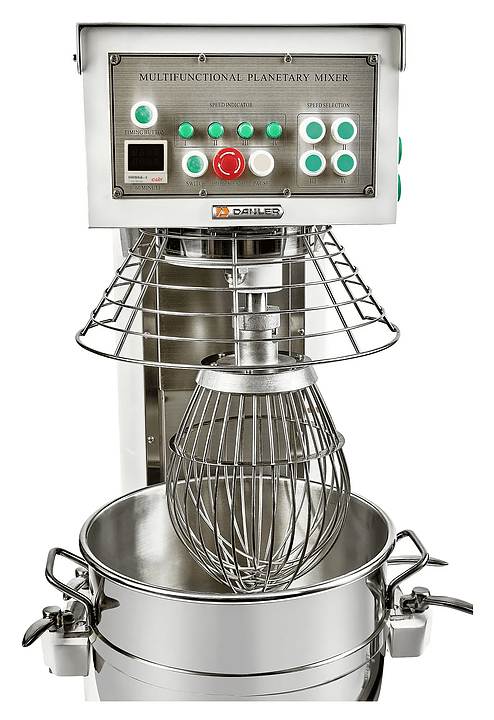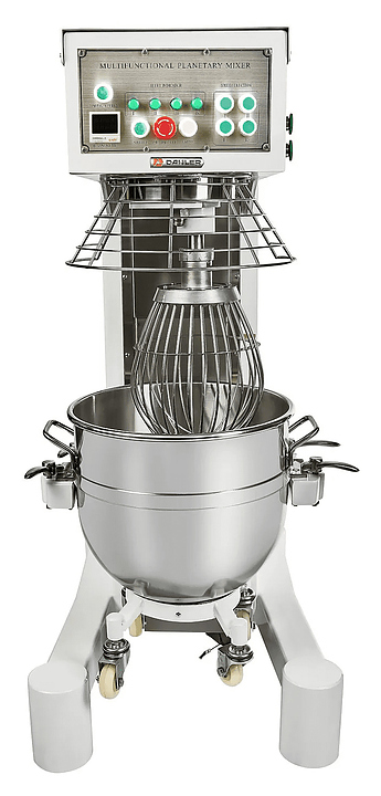 Планетарный миксер Danler MS-180 предназначен для замеса различного вида теста жидкой консистенции, в том числе белкового, заварного, дрожжевого, бисквитного, а также для приготовления пюре, майонеза, различных соусов, взбитых сливок в пекарнях, кондитерских, на предприятиях общественного питания и торговли. Модель оснащена электрическим привод поднятия и опускания дежи. Корпус выполнен из углеродистой стали с покрытием молотковой эмалью, дежа - из нержавеющей стали. В комплект поставки входят дежа, венчик и лопатка. Особенности: