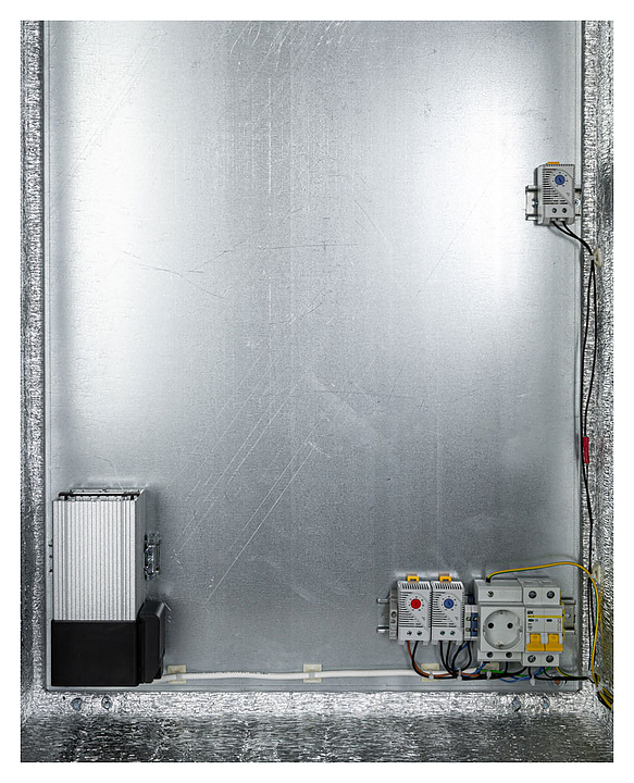 Климатический шкаф MASTERMANN 5УТПВ-А+ (Ver. 2.0) используется для безопасного размещения телекоммуникационного оборудования на предприятиях пищевой промышленности, общественного питания и торговли в уличных условиях или в помещениях с колебаниями параметров температуры и влажности. Монтажная панель с компонентами системы поддержания температуры обеспечивает безопасную работу оборудования. Реле предстарта обеспечивает включение электрооборудования только при условии достижения оптимальной температуры эксплуатации. Корпус и дверь выполнены из стали, покрытой порошковой полиэфирной краской, утеплитель - из порилекса НПЭ. В комплект поставки входят 2 замка, ключ, монтажная плата, 5 гермовводов, розетка, автоматический выключатель, термореле, реле предстарта, нагреватель, вентилятор NTL FF 152 и 2 вентиляционные панели. Особенности: