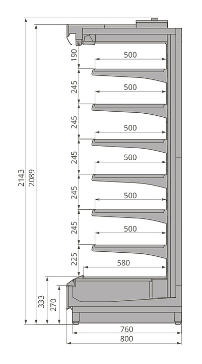 Горка холодильная Brandford Tesey Slim 2080 190 (без боковин)