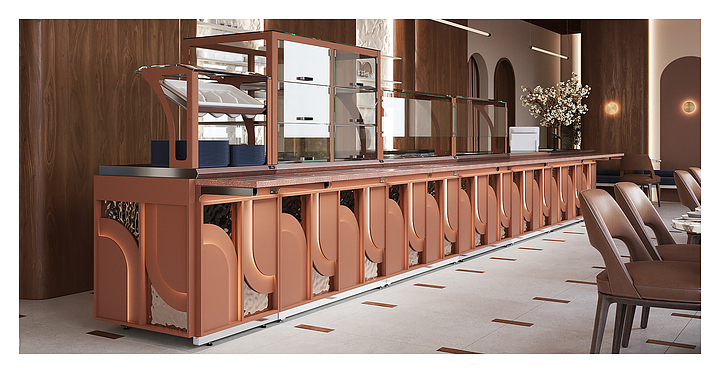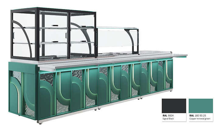 Прилавок холодильный Luxstahl ПХК (С)-1200 Premium Arch (Арка) используется в составе линии раздачи Arch на предприятиях общественного питания и торговли для выкладки продуктов и напитков. Модель оснащена верхней полкой из стекла 6 мм и подсветкой (две светодиодные лампы). Каркас выполнен из нержавеющей стали AISI 430 толщиной 1 мм, фасад - из окрашенного МДФ, направляющая для подносов - из профильной трубы 25х25 мм. Особенности:
