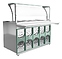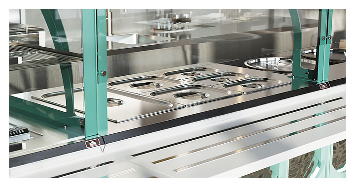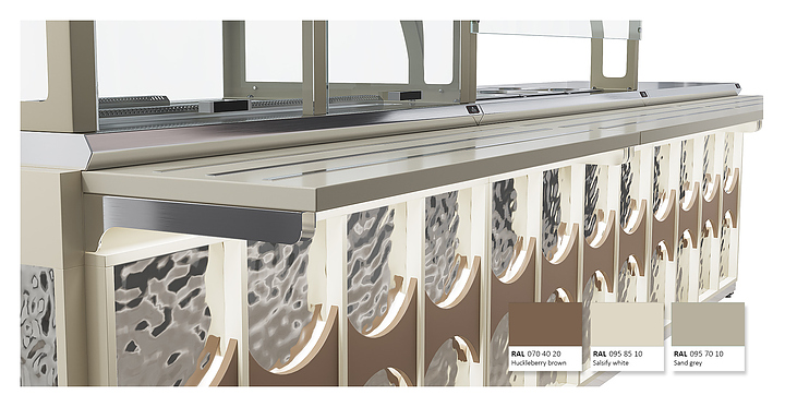Электрический мармит паровой Luxstahl МВП (С)-1500 Premium Mirror (Зеркало) с направляющей из нержавеющей стали используется в составе линии раздачи Mirror на предприятиях общественного питания и торговли для кратковременного хранения в горячем состоянии вторых блюд в гастроемкостях и раздачи их потребителям. Модель оснащена терморегулятором (три ПЭН-а) и верхней полкой из стекла 6 мм. Каркас выполнен из нержавеющей стали AISI 430 толщиной 1 мм, фасад - из окрашенного МДФ, направляющая для подносов - из профильной трубы 25х25 мм. Особенности: