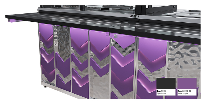 Прилавок кассовый универсальный Luxstahl КК-1200 Premium Vector (Вектор) с направляющей для подносов из нержавеющей стали используется в составе линии раздачи Vector на предприятиях общественного питания и торговли для оборудования рабочего места продавца-кассира. Модель оснащена дополнительной полкой и отверстием для кабеля. Каркас выполнен из нержавеющей стали AISI 430 толщиной 1 мм, фасад - из окрашенного МДФ, направляющая для подносов - из профильной трубы 25х25 мм. Особенности: