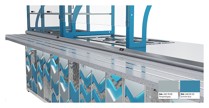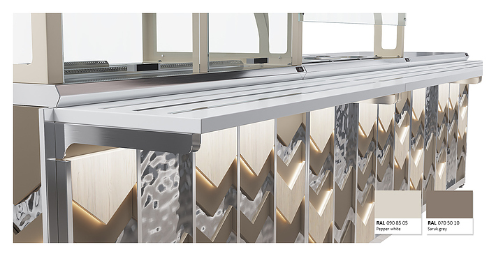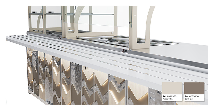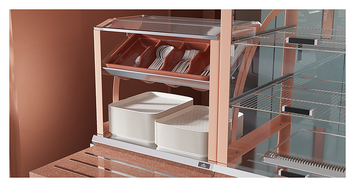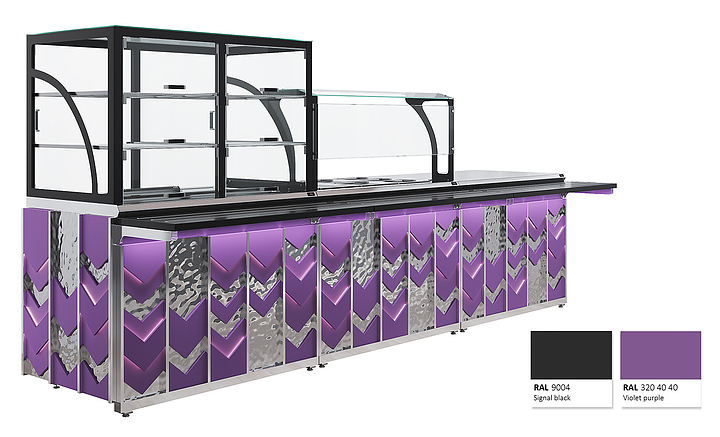 Мармит первых блюд под электрические супницы Luxstahl МПН (С)-1200 Premium Vector (Вектор) с направляющей из нержавеющей стали используется в составе линии раздачи Vector на предприятиях общественного питания и торговли для кратковременного хранения в горячем состоянии первых блюд в электрический супницах и раздачи их потребителю. Модель оснащена 3 розетками под электрические мармиты и верхней полкой из стекла 6 мм. Каркас выполнен из нержавеющей стали AISI 430 толщиной 1 мм, фасад - из окрашенного МДФ, направляющая для подносов - из профильной трубы 25х25 мм. Особенности: