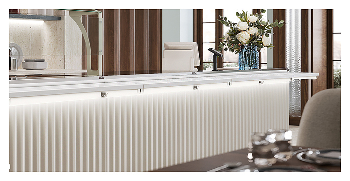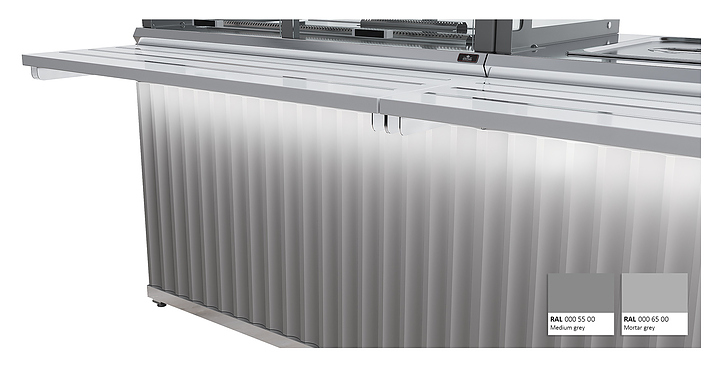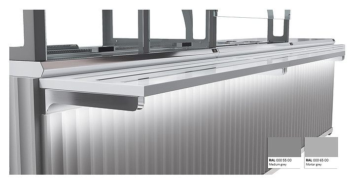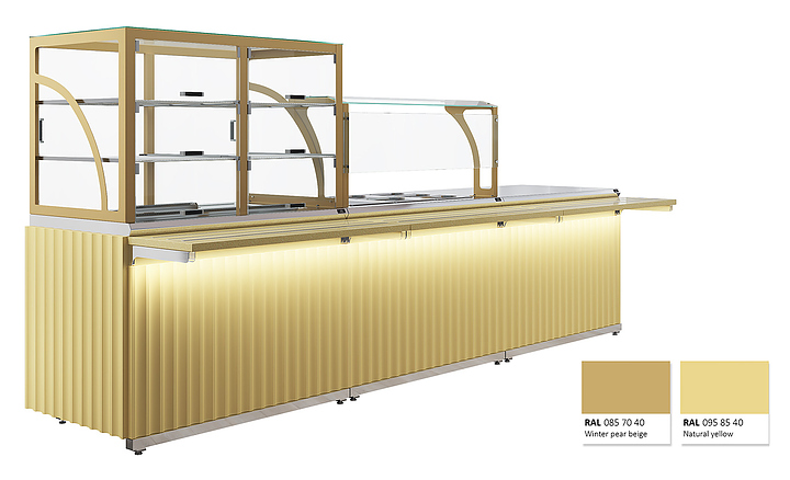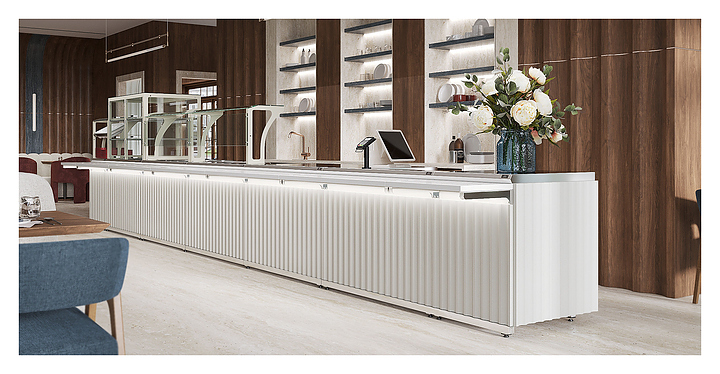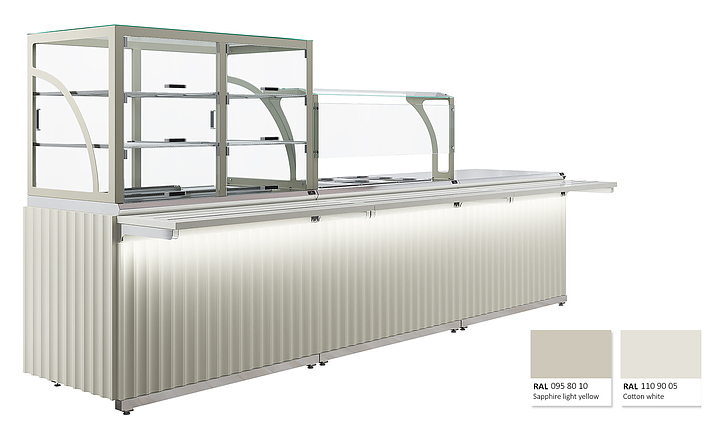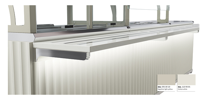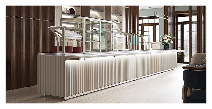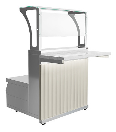 Мармит первых блюд под электрические супницы Luxstahl МПН (С) -900 Premium Elegia (Элегия) с направляющей из нержавеющей стали используется в составе линии раздачи Elegia на предприятиях общественного питания и торговли для кратковременного хранения в горячем состоянии первых блюд в электрический супницах и раздачи их потребителю. Модель оснащена 2 розетками под электрические мармиты и верхней полкой из стекла 6 мм. Каркас выполнен из нержавеющей стали AISI 430 толщиной 1 мм, фасад - из окрашенного МДФ, направляющая для подносов - из профильной трубы 25х25 мм. Особенности: