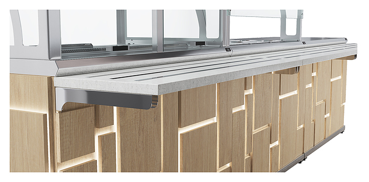 Нейтральный прилавок Luxstahl ПН-1200 Premium Megapolis (Мегаполис) используется в составе линии раздачи Megapolis на предприятиях общественного питания и торговли для выкладки продуктов и напитков, не требующих подогрева или охлаждения, а также для установки дополнительного оборудования и приспособлений. Модель оснащена вместительной полкой в нише. Каркас выполнен из нержавеющей стали AISI 430 толщиной 1 мм, фасад - из окрашенного МДФ, направляющая для подносов - из профильной трубы 25х25 мм. Особенности: