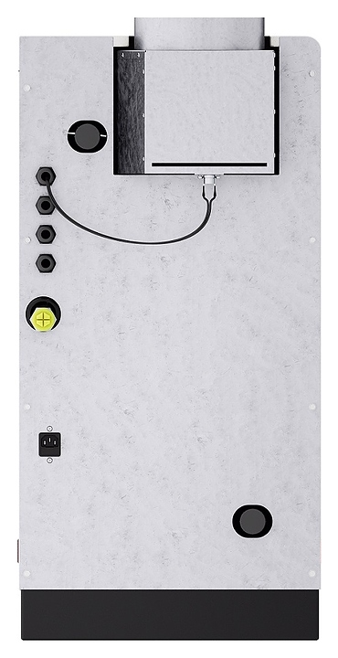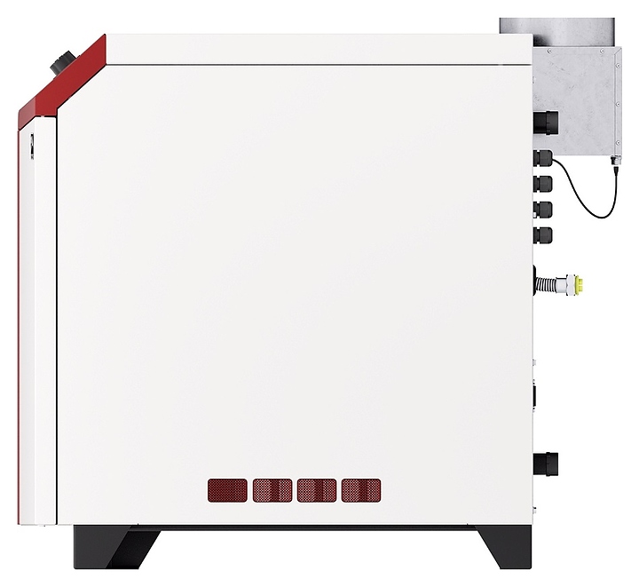 Распашная фронтальная дверь с магнитным фиксатором, легкосъемные боковая панель и верхняя крышка с клипсовым креплением, съемные крышки дымосборника для удобства технического обслуживания и очистки без необходимости отсоединения дымохода