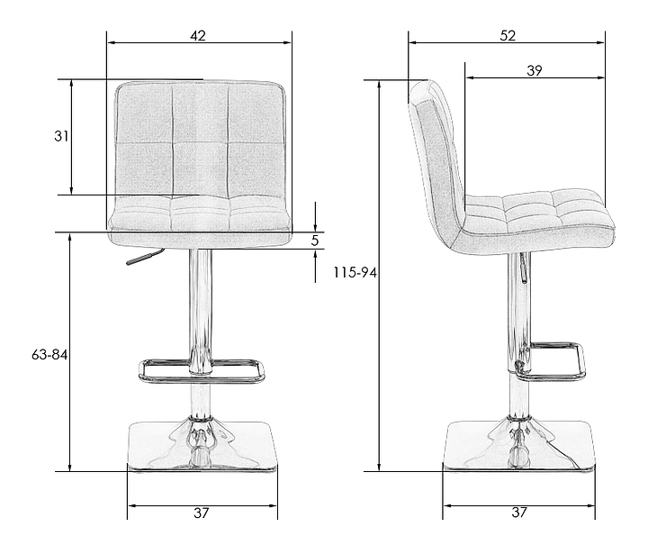Барный стул DOBRIN 5018-LM DOMINIC предназначен для обустройства барной зоны в кухнях, столовых, гостиных, а также в кафе и ресторанах. Модель оснащена квадратным основанием, мягким сиденьем квадратной формы, спинкой и подставкой для ног. Основание выполнено из металла, обивка - из велюра. Особенности: