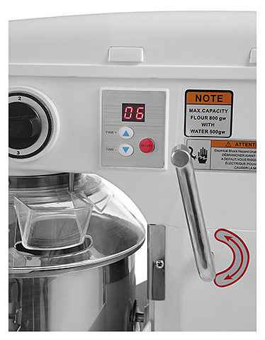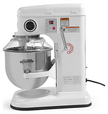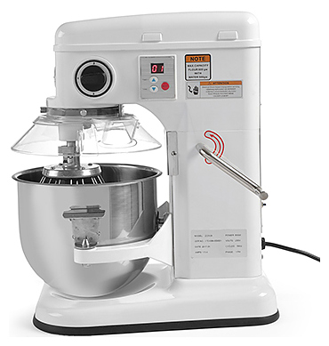 Планетарный миксер HENDI Kitchen Line 222829 используется на предприятиях пищевой промышленности, общественного питания и торговли для замеса теста, взбивания кремов, муссов, а также приготовления пюре и соусов. Модель оснащена цифровой панелью управления, таймером и защитой дежи. Подъемная головка опускается и поднимается при помощи рычага, предохранитель включения миксера при поднятой головке или неправильно установленной деже гарантирует безопасную эксплуатацию. Корпус выполнен из алюминия, дежа - из нержавеющей стали, защита дежи - из пластика. В комлект поставки входят венчик, насадка для смешивания и крюк для теста. Дополнительные характеристики: