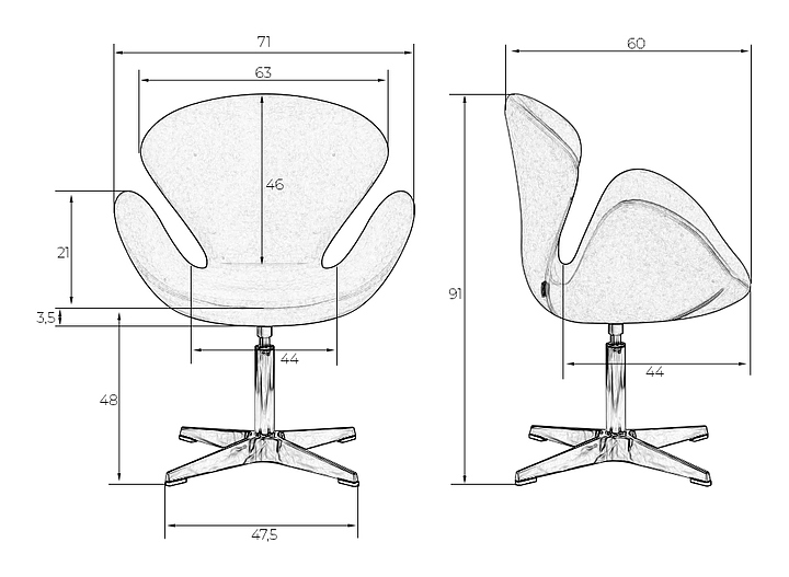 Обеденное кресло DOBRIN 69A-LMO SWAN предназначено для меблировки дачи, дома, квартиры, кафе и ресторана. Модель оснащена мягким вращающимся сиденьем, спинкой, подлокотниками и крестообразным основанием. Основание выполнено из алюминия, обивка - из ткани. Особенности: