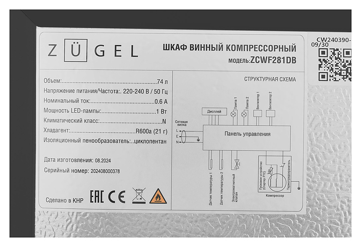 Винный шкаф Zugel ZCWF281DB черный