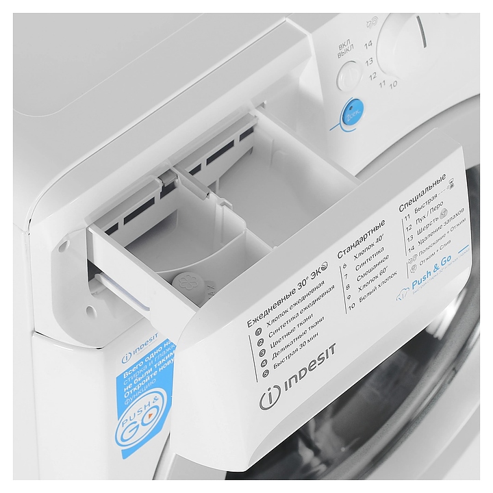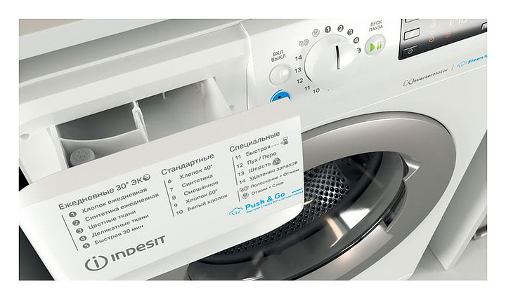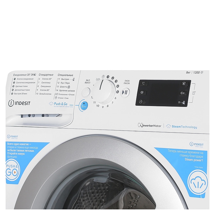 Push&Go Steam: быстрый запуск одним касанием цикла быстрой стирки 30 °С с обработкой горячим паром