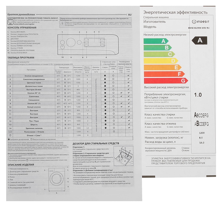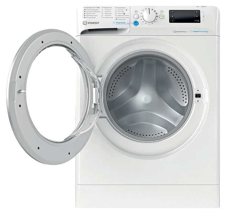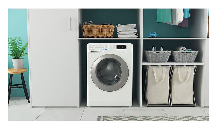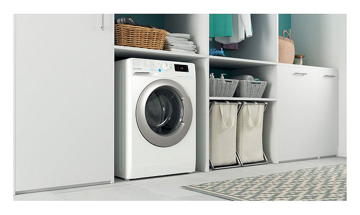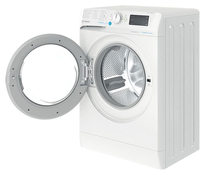 Стиральная машина Indesit BWSE 81293X WSV RU используется в домашних условиях, а также небольших прачечных для стирки, полоскания и отжима белья, одежды и тканей. Модель оснащена фронтальным загрузочным люком, левосторонней дверью с интегрированной рукояткой и обзорным остеклением, съемным контейнером для моющих средств с 3 отсеками, сливным шлангом, кабелем питания с вилкой, электромеханической панелью управления с поворотным переключателем программ, нажимными функциональными клавишами, светодиодными индикаторами, дисплеем с символьными и цифровыми сегментами индикации. Корпус выполнен из металла с антикоррозийным покрытием белого цвета, дверь люка – из пластика с поверхностью серебристого оттенка, остекление – из прочного термостойкого стекла, барабан – из высококачественной нержавеющей стали.