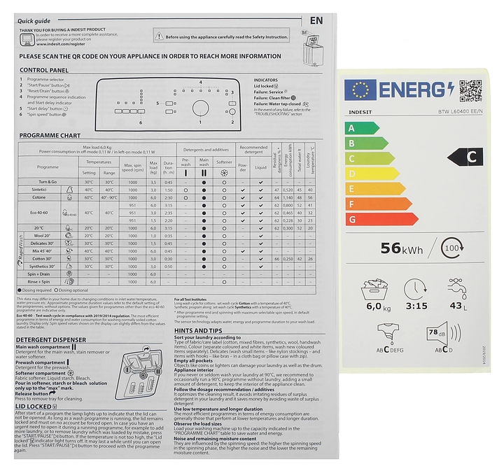 Стиральная машина Indesit BTW L60400 EE/N используется в домашних условиях, а также небольших прачечных для стирки, полоскания и отжима белья, одежды и тканей. Модель оснащена верхним загрузочным люком, откидной дверью с интегрированной рукояткой, контейнером для моющих средств с 3 отсеками, сливным шлангом, кабелем питания с вилкой, электромеханической панелью управления с поворотным переключателем программ, нажимными функциональными клавишамии и светодиодными индикаторами. Корпус выполнен из металла с антикоррозийным покрытием белого цвета, барабан – из высококачественной нержавеющей стали, бак – из пластика.