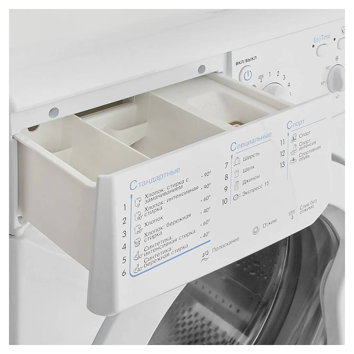 EcoTime: энергосберегающая оптимизация вращения барабана, температуры стирки, расхода воды и длительности цикла