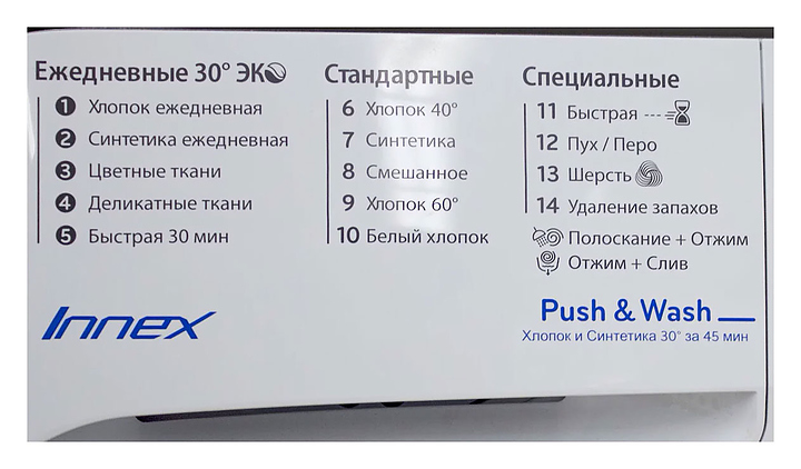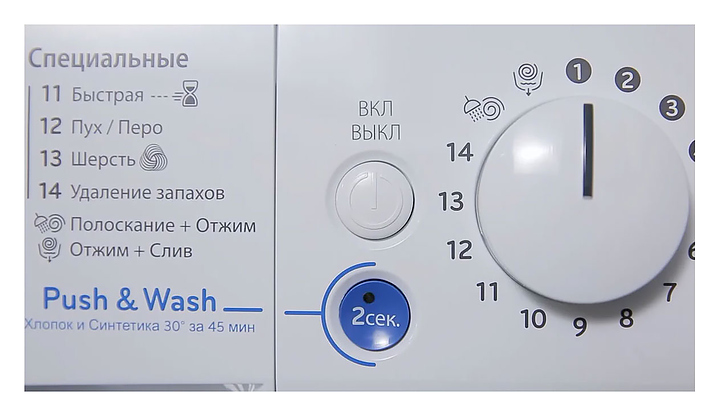 Push&Wash: быстрый запуск одним касанием цикла быстрой стирки 30 °С с обработкой горячим паром