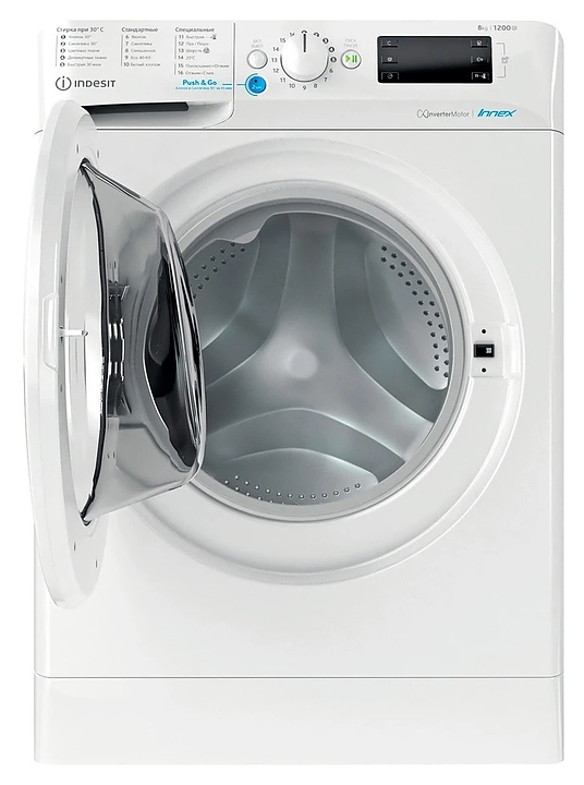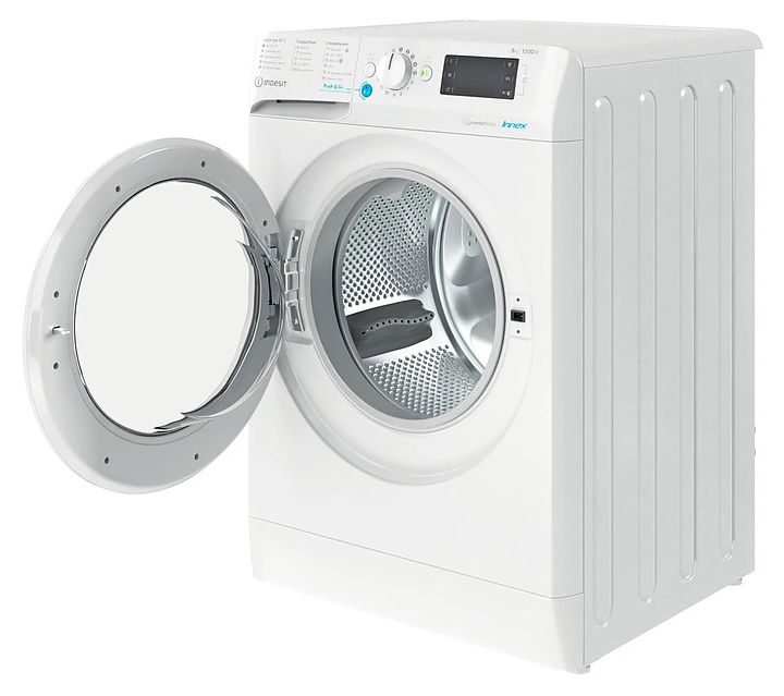 Стиральная машина Indesit BWE 81282 L используется в домашних условиях, а также небольших прачечных для стирки, полоскания и отжима белья, одежды и тканей. Модель оснащена фронтальным загрузочным люком, левосторонней дверью с интегрированной рукояткой и обзорным остеклением, съемным контейнером для моющих средств с 3 отсеками, сливным шлангом, кабелем питания с вилкой, электромеханической панелью управления с поворотным переключателем программ, нажимными функциональными клавишами, светодиодными индикаторами, дисплеем с символьными и цифровыми сегментами индикации. Корпус выполнен из металла с антикоррозийным покрытием белого цвета, дверь люка – из пластика с поверхностью белого цвета, остекление – из прочного термостойкого стекла, барабан – из высококачественной нержавеющей стали.