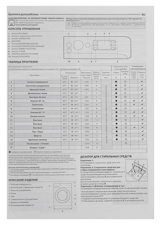 Температура по умолчанию (максимальная или диапазон) / максимальная скорость отжима / максимальная загрузка соответственно программе: