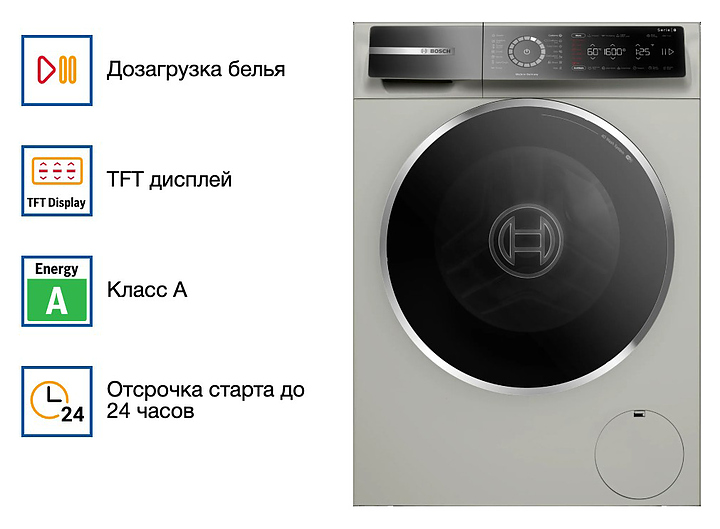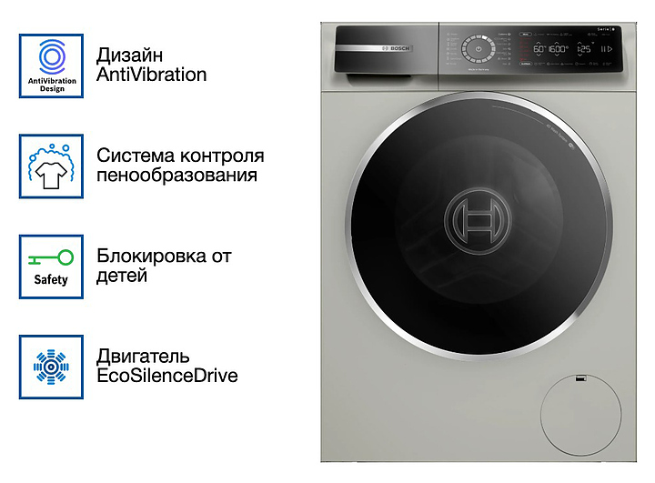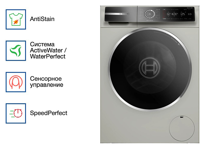 Стиральная машина Bosch WGB2560XME используется в квартирах и частных домах для стирки, полоскания и отжима белья, ткани и одежды. Модель оснащена фронтальной загрузкой, сенсорным управлением и многофункциональным TFT дисплеем, на котором отображается информация о ходе программы, времени до окончания стирки и максимальной загрузке для выбранной программы. Инверторный двигатель EcoSilence Drive отличается низким уровнем шума и долговечностью. Внутренняя подсветка обеспечивает удобство использования, дизайн AntiVibration снижает уровень вибрации и шума при работе. Барабан VarioDrum выполнен из нержавеющей стали. 13 программ стирки: