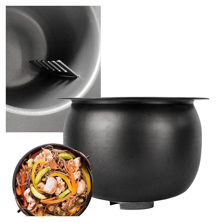 Чаша сменная Kocateq GHT6/2200SF noodle bowl предназначена для совместного использования с опрокидывающейся сковородой GHT6/2200SF для приготовления блюд с постоянным перемешиванием на предприятиях общественного питания и торговли. Модель оснащена гребенкой для перемешивания лапши. Чаша выполнена из нержавеющей стали толщиной 2 мм с антипригарным покрытием. Характеристики: