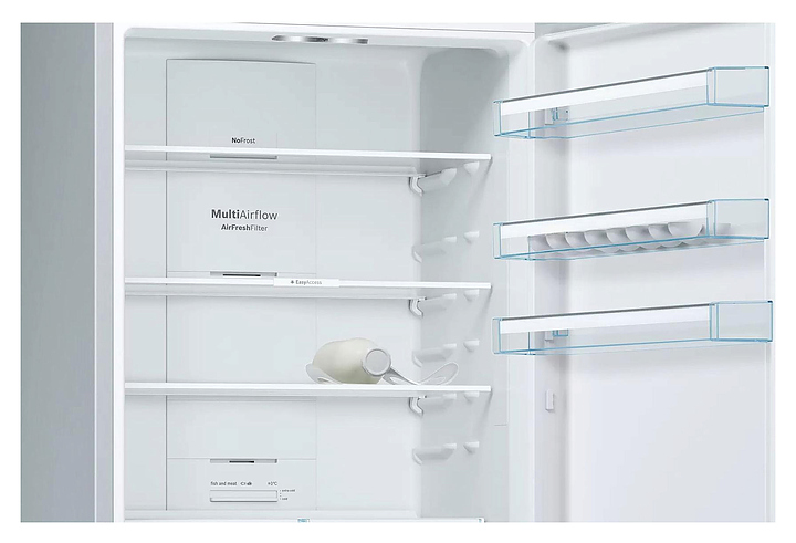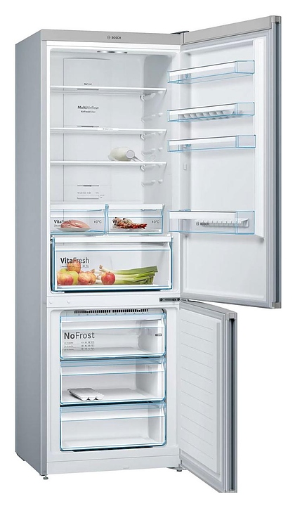 Холодильник Bosch KGN49XL30U предназначен для охлаждения, замораживания, кратковременного и длительного хранения продуктов питания в частных домах, квартирах, отелях и офисах. Модель оснащена электронным управлением с сенсорными элементами, дисплеем, внутренним светодиодным освещением, встроенной вертикальной ручкой и 4 полками в холодильном отделении. Система охлаждения No Frost предотвращает образование льда и инея внутри холодильной и морозильной камер, что упрощает обслуживание, экономит энергию и поддерживает оптимальные условия для хранения продуктов. Функция MultiAirflow обеспечивает равномерное распределение холодного воздуха по всему объему для сохранения свежести продуктов дольше. Особенности: