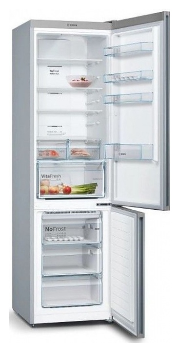 Холодильник Bosch KGN39XI30U предназначен для охлаждения, замораживания, кратковременного и длительного хранения продуктов питания в частных домах, квартирах, отелях и офисах. Модель оснащена сенсорными элементами управления, дисплеем, внутренним светодиодным освещением холодильной камеры и встроенной вертикальной ручкой. Система охлаждения No Frost предотвращает образование льда и инея внутри холодильной и морозильной камер, что упрощает обслуживание, экономит энергию и поддерживает оптимальные условия для хранения продуктов. Функция FreshSense поддерживает стабильную температуру внутри холодильника, а система MultiAirflow обеспечивает равномерное распределение холодного воздуха. Корпус выполнен из нержавеющей стали, полки - из высокопрочного стекла. Особенности: