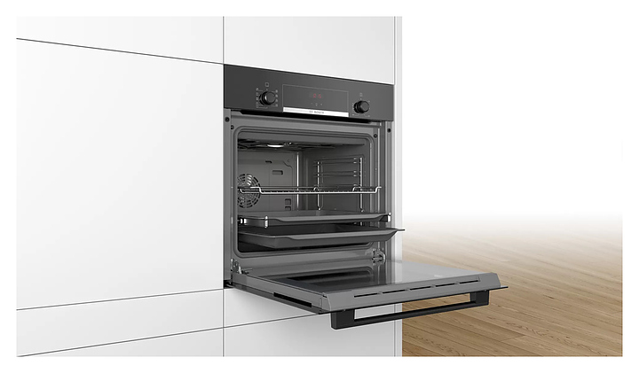 Духовой шкаф Bosch HBF534EB0Q серии 4 используется в квартирах и частных домах для приготовления широкого спектра блюд из овощей, мяса, птицы и рыбы, а также выпечки десертов и хлебобулочных изделий. Модель оснащена LED дисплеем, сенсорными, поворотными и утапливаемыми элементами управления, электронными часами, таймером и галогенным внутренним освещением. Брызги от жарения и выпекания поглощаются пористой матовой керамикой EcoClean и удаляются во время работы прибора. В комплект поставки входят комбинированная решетка, эмалированный и универсальный противни. Особенности: