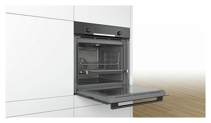 Духовой шкаф Bosch HBA534EB0 серии 4 используется в квартирах и частных домах для приготовления широкого спектра блюд из овощей, мяса, птицы и рыбы, а также выпечки десертов и хлебобулочных изделий. Модель оснащена LED дисплеем, сенсорными, поворотными и утапливаемыми элементами управления, электронными часами, таймером и галогенным внутренним освещением. Брызги от жарения и выпекания поглощаются пористой матовой керамикой EcoClean и удаляются во время работы прибора. В комплект поставки входят решетка и универсальный противень. Особенности: