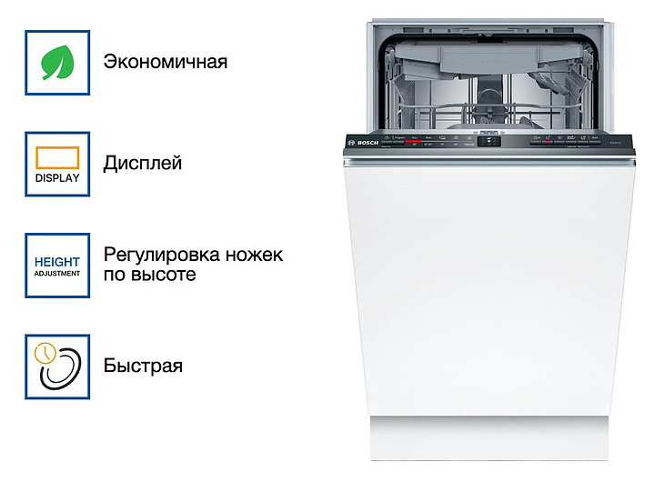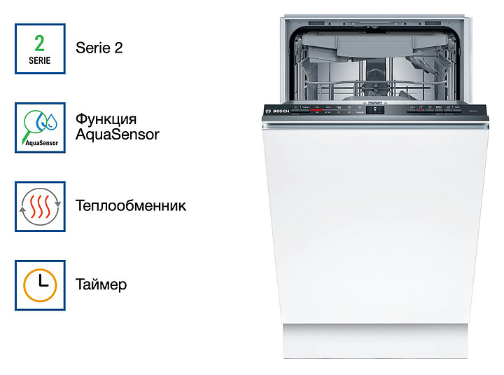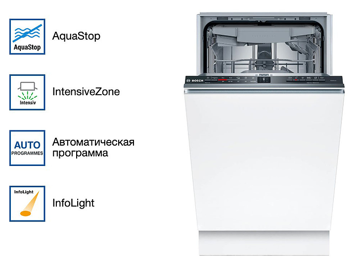 Посудомоечная машина Bosch SPV2HMX42E серии 2 предназначена для гигиенической обработки и последующей сушки различной посуды в домашних условиях. Модель оснащена инверторным двигателем EcoSilence Drive, моечной камерой с откидной дверью, закрытой панелью управления с кнопками и дисплеем. Световой индикатор InfoLight позволяет отслеживать окончание цикла мойки без открывания дверцы. Система ActiveWater использует точное количество воды, необходимое для каждой загрузки в зависимости от количества и степени загрязненности посуды, обеспечивая эффективное и экономное мытье.Внутренний резервуар выполнен из нержавеющей стали. Особенности: