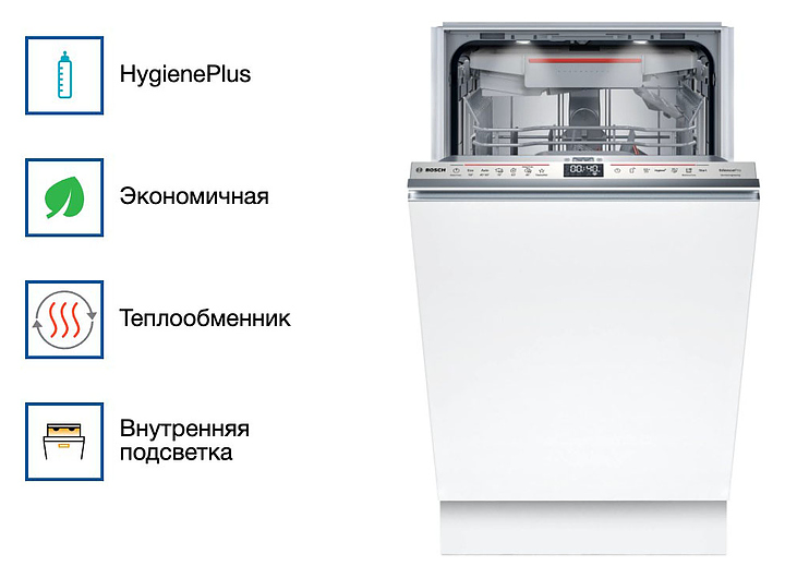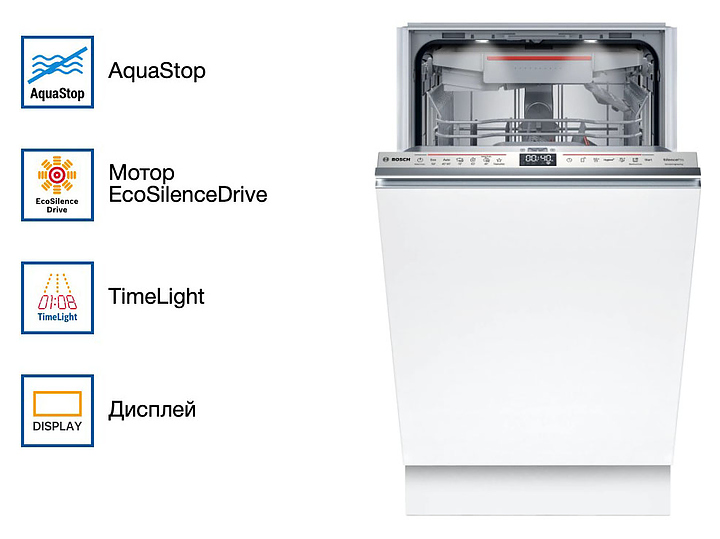 Посудомоечная машина Bosch SPV6EMX76Q серии 6 предназначена для гигиенической обработки и последующей сушки различной посуды в домашних условиях. Модель оснащена инверторным двигателем EcoSilence Drive, моечной камерой с откидной дверью, закрытой панелью управления с сенсорными кнопками и дисплеем. Световой индикатор луч на полу TimeLight позволяет отслеживать оставшееся время цикла мойки с точностью до минуты без открывания дверцы. Внутренний резервуар выполнен из нержавеющей стали. Особенности: