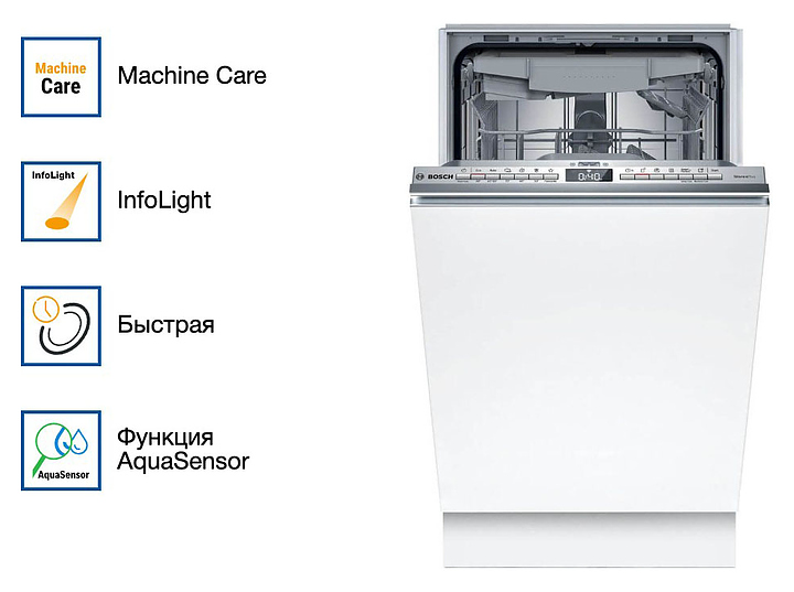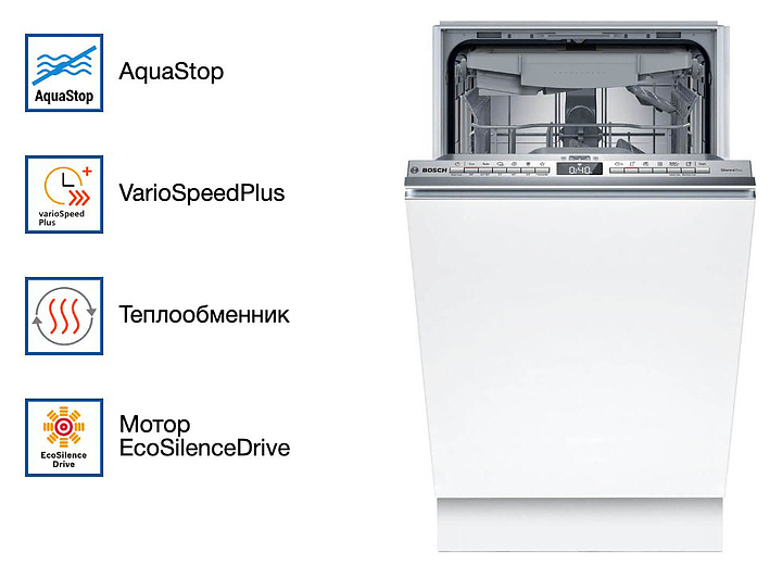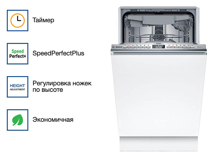Посудомоечная машина Bosch SPV4EMX10E серии 4 предназначена для гигиенической обработки и последующей сушки различной посуды в домашних условиях. Модель оснащена инверторным двигателем EcoSilence Drive, моечной камерой с откидной дверью, закрытой панелью управления с кнопками и регулируемыми по высоте ножками. Световой индикатор луч на полу InfoLight позволяет отслеживать окончание мойки без открывания дверцы. Внутренний резервуар выполнен из нержавеющей стали. Особенности: