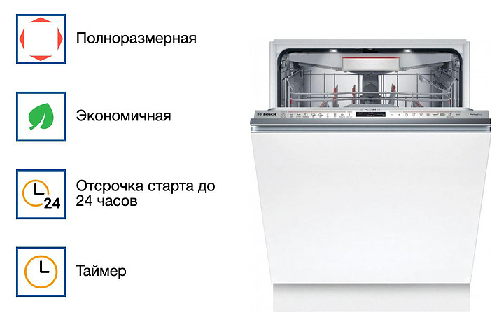 Посудомоечная машина Bosch SMV8YCX02E серии 8 предназначена для гигиенической обработки и последующей сушки различной посуды в домашних условиях. Модель оснащена инверторным двигателем EcoSilence Drive, моечной камерой с откидной дверью, закрытой панелью управления с сенсорными кнопками и регулируемыми по высоте ножками. Световой индикатор луч на полу TimeLight позволяет отслеживать оставшееся время цикла мойки с точностью до минуты без открывания дверцы. Внутренний резервуар выполнен из нержавеющей стали. Особенности: