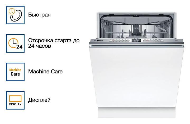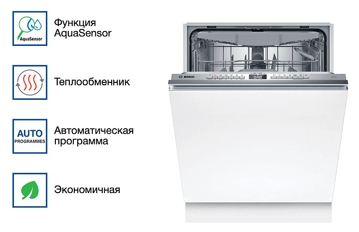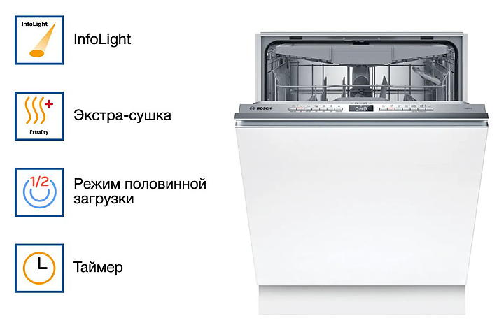 Посудомоечная машина Bosch SMV4HVX03E серии 4 предназначена для гигиенической обработки и последующей сушки различной посуды в домашних условиях. Модель оснащена инверторным двигателем EcoSilence Drive, моечной камерой с откидной дверью и закрытой панелью управления с кнопками. Сенсор чистоты воды AquaSensor автоматически контролирует степень загрязнения, что обеспечивает идеальный результат мытья. Световой индикатор луч на полу InfoLight позволяет отслеживать окончание мойки без открывания дверцы. Внутренний резервуар выполнен из нержавеющей стали и пластика. Особенности: