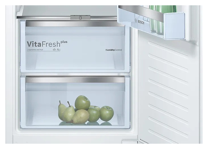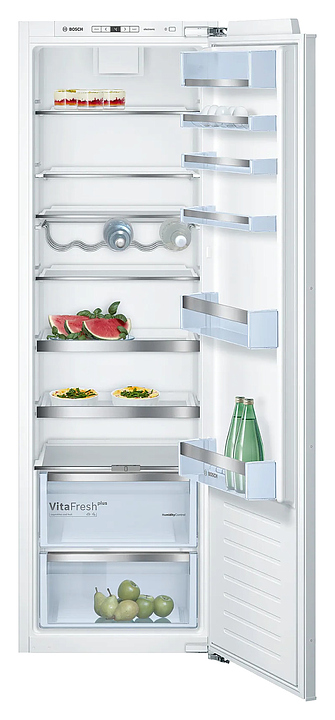 Встраиваемый холодильник Bosch KIR81AF30U серии 6 предназначен для охлаждения, замораживания, кратковременного и длительного хранения продуктов питания в частных домах, квартирах, отелях и офисах. Модель оснащена электронным управлением с кнопками, дисплеем и внутренним светодиодным освещением. Фильтр Airfresh эффективно улавливает неприятные запахи внутри холодильника, нейтрализует вредоносные бактерии и микроорганизмы, что обеспечивает чистоту. Полки выполнены из высокопрочного стекла. Особенности: