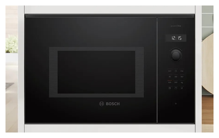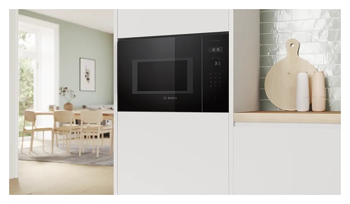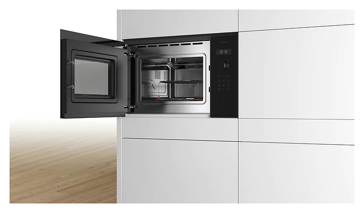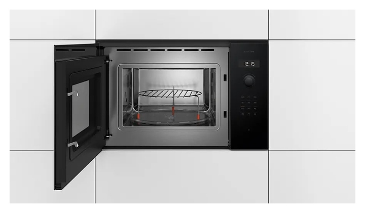 Встраиваемая микроволновая печь Bosch BEL454MB1F серии 6 предназначена для приготовления пищи, подогрева готовых блюд и ингредиентов, а также размораживания полуфабрикатов в частных домах, квартирах, отелях и офисах. Модель оснащена электронным управлением с кнопками, поворотным переключателем Rotary Control, кнопкой старт/стоп, LED дисплеем, часами и таймером. Функция AutoPilot самостоятельно регулирует температуру, время приготовления и режимы нагрева без необходимости следить за процессом. Внутренняя поверхность выполнена из нержавеющей стали. В комплект поставки входят стеклянное поворотное блюдо и решетка для гриля. Особенности: