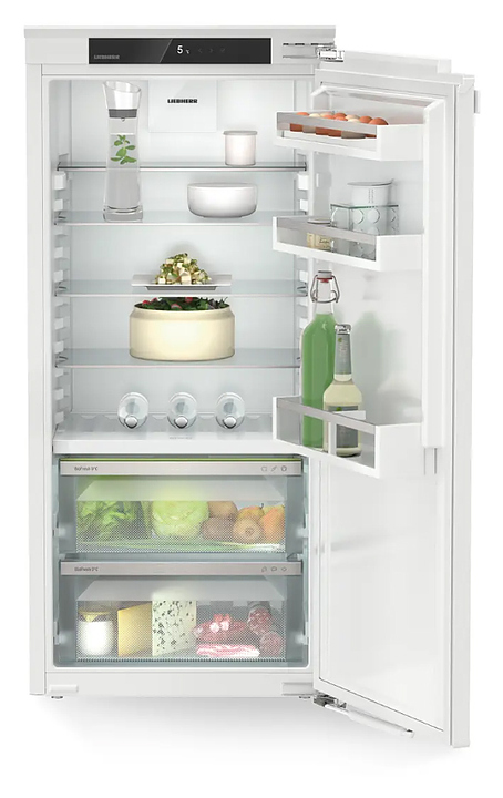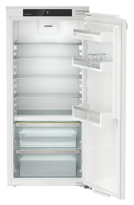 Встраиваемый холодильник Liebherr IRBc 4120 серии Plus предназначен для охлаждения и хранения пищевых продуктов и напитков в гостиничных комплексах, офисах, а также домашних условиях. Модель оснащена сенсорной панелью управления с монохромным ЖК-дисплеем и с функцией блокировки от детей. Полки в камере выполнены из стекла, полки на двери - из белого пластика, сухая задняя стенка - из пластика.